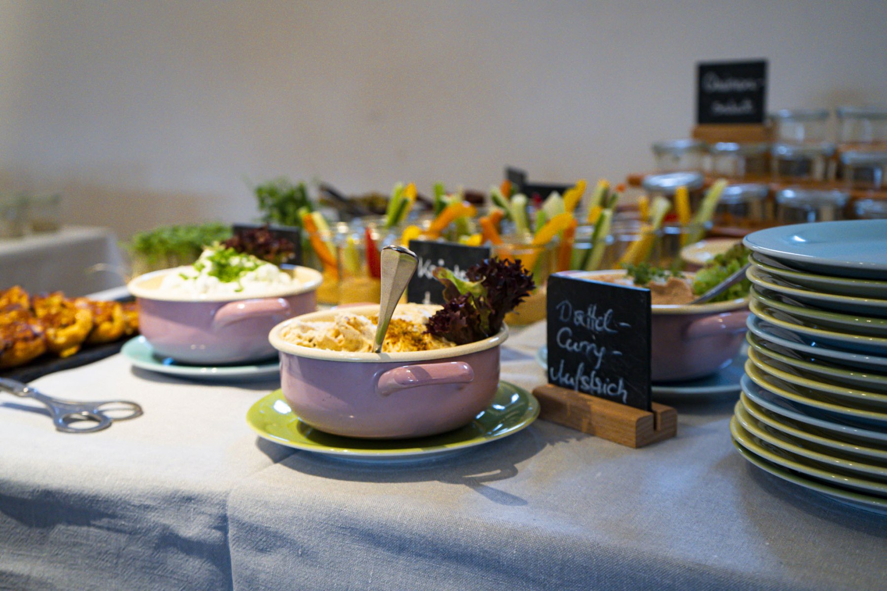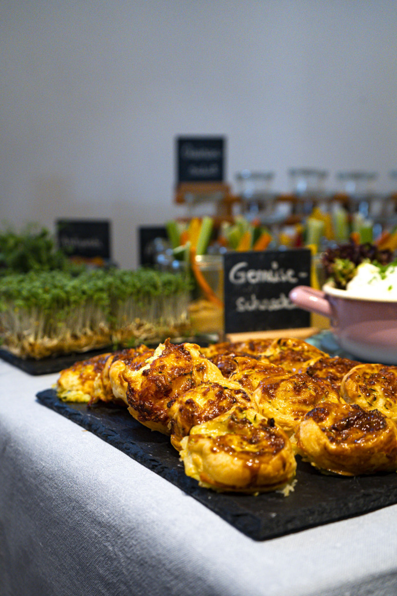 🥐 Frisches Gebäck, eine feine Auswahl an Käse, Wurst und Lachs, knackiges Gemüse, frisch aus der Küche zubereitetes Fingerfood, hausgemachte Aufstriche, frische Sprossen, verschiedenste Kreationen im Glas, Joghurt, Müsli und Süßes wie bspw. Mini-Croissants, selbst-gebackener Kuchen oder an diesem Morgen auch: Topfen-Creme in passender Snack-weg-Größe.