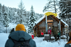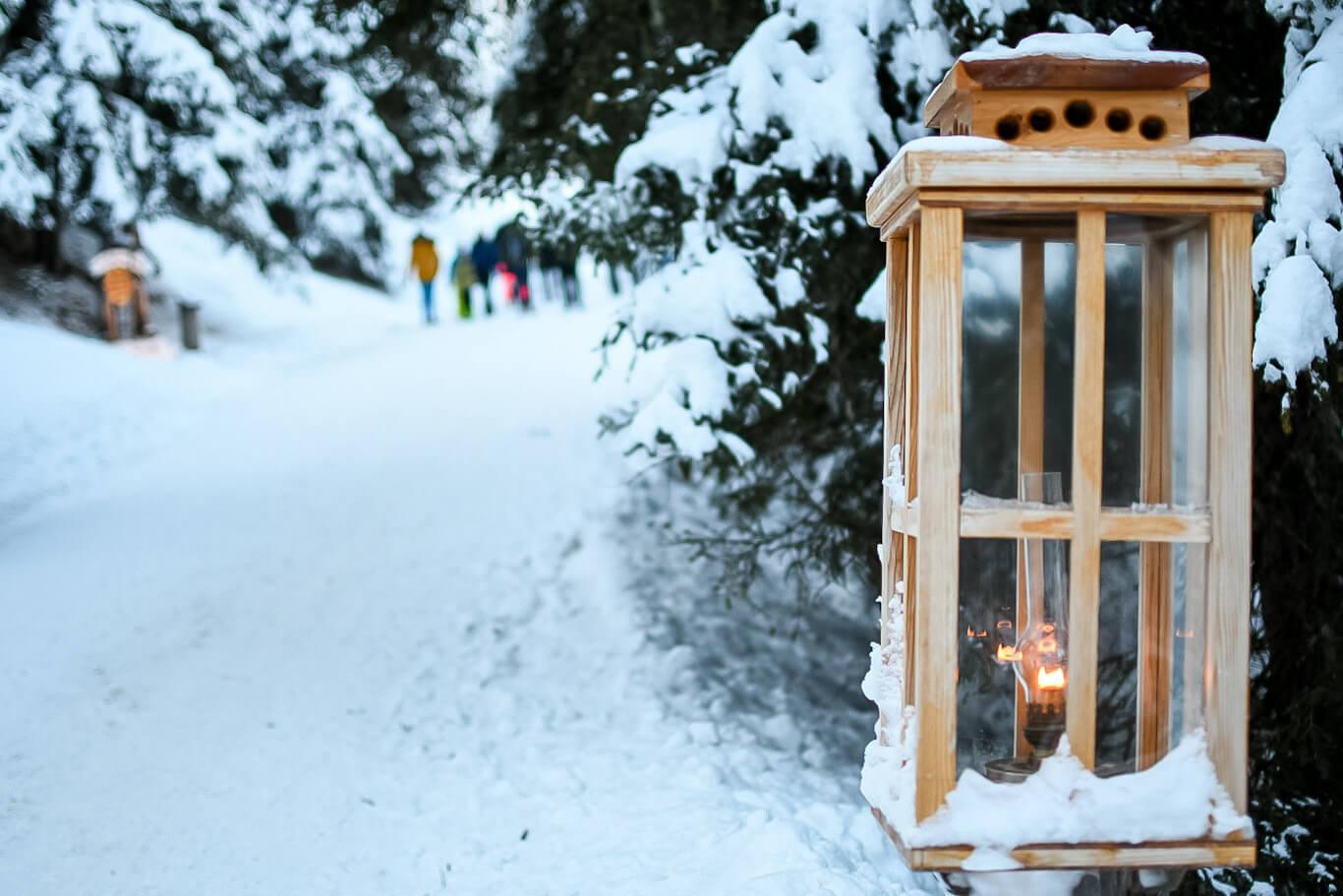 Da wir nun unser Eintrittsticket haben und top motiviert sind, machen wir uns auf dem Weg zur Pritzhütte. Der schneebedeckte Wanderweg ist mit supersüßen Holzlaternen 🕯️ am Wegrand geschmückt und entlang der Wanderung findet man verschiedenste Weihnachtsdeko mit tollen Sprüchen darauf.