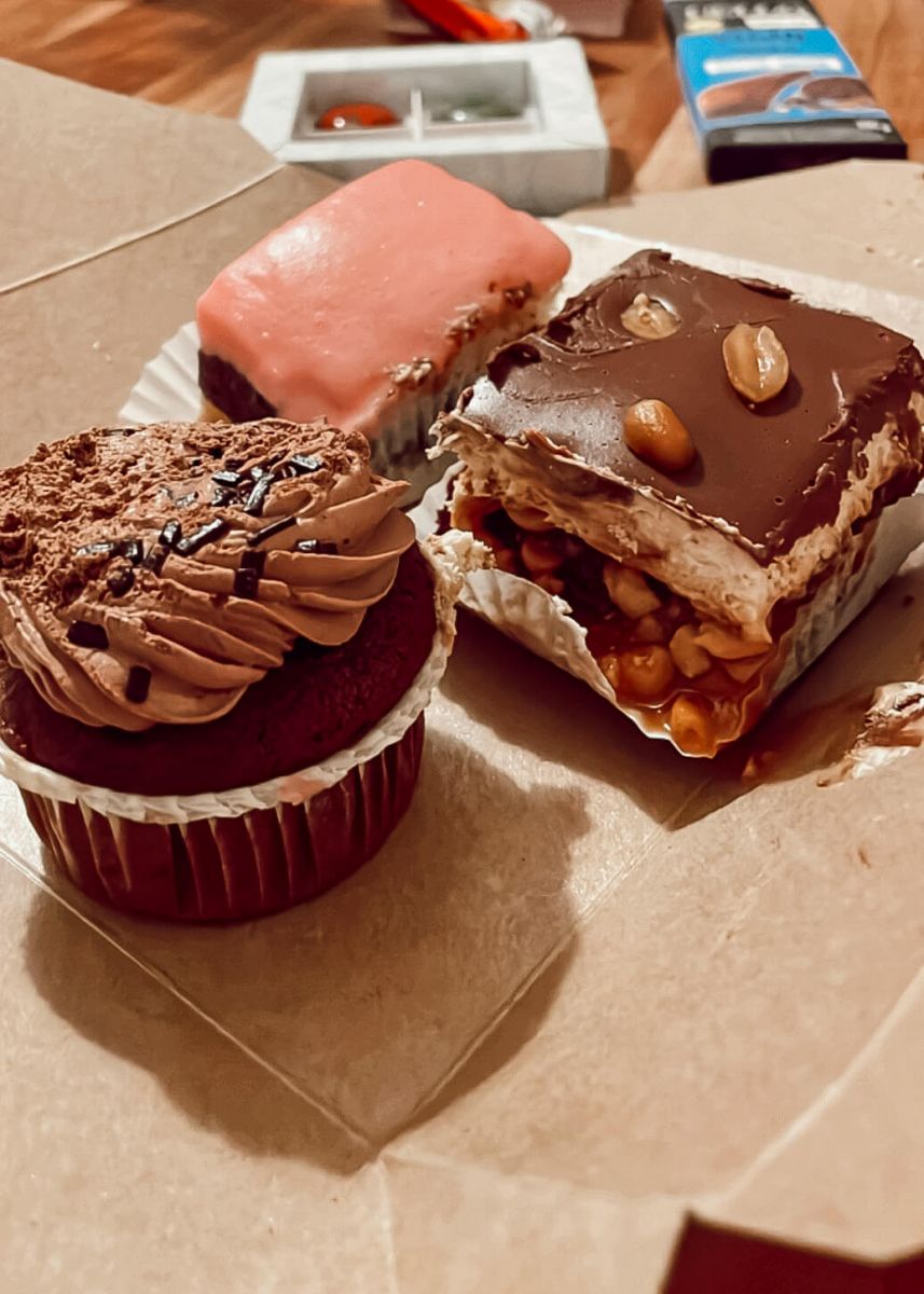 Wir haben so vieles probiert, getestet und vernascht, dass wir uns kaum noch bewegen konnten. Es war genial. Angefangen mit der Currywurst und den weltbesten Pommes und als Beilage Kartoffelpops von Mr Currywurst. Dann probierten wir Köfte vom Hanselmann. Währenddessen aß jeder von uns eine Portion Grammelknödel mit Sauerkraut von Jablonski. Als Nachspeise gabs Datteln, Lini’s Bites, bettilicious und vieles mehr – du siehst schon, da waren einige Kalorien im Spiel und ich bereue keine einzige davon!