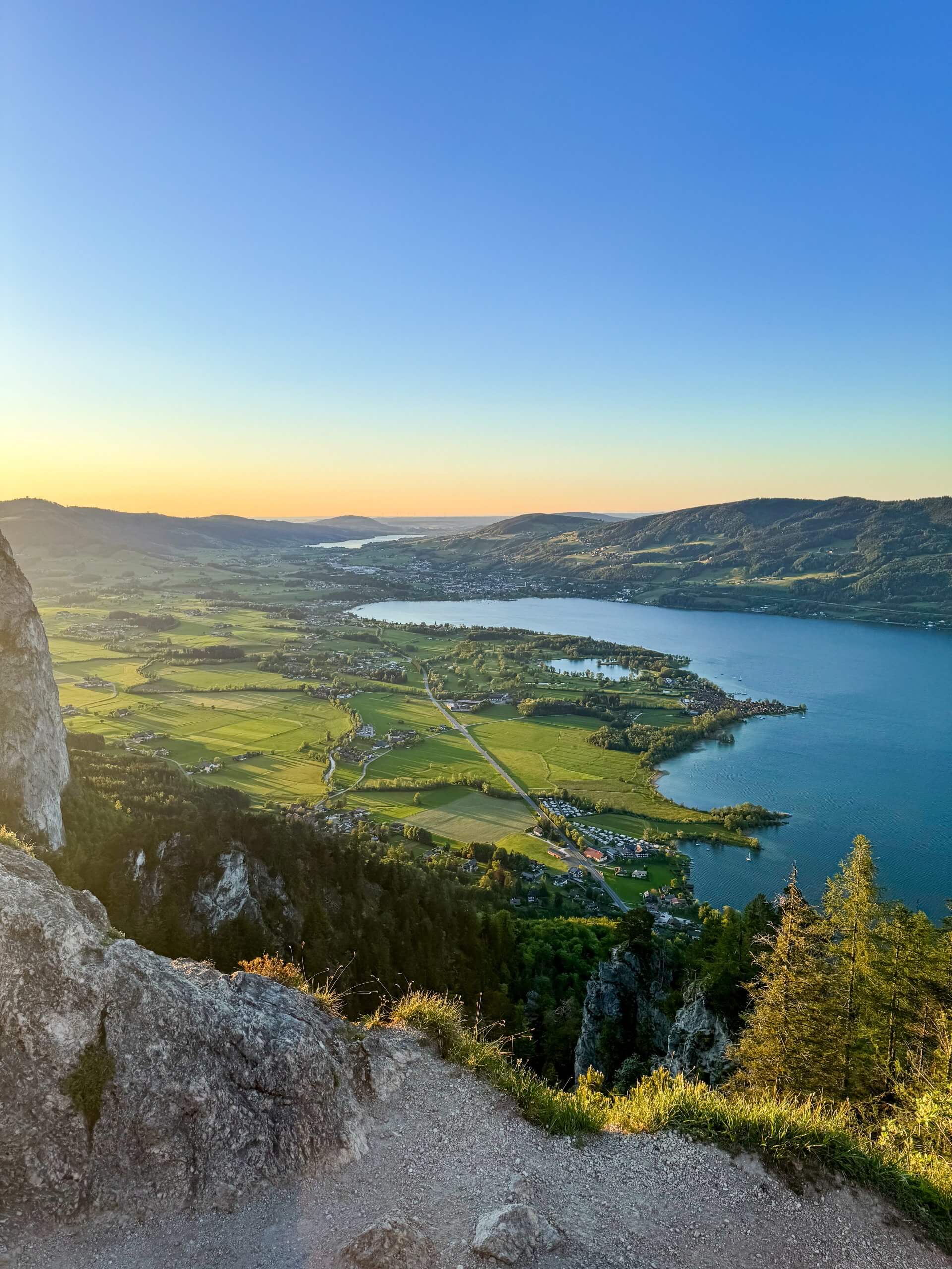 Die Wanderung zum Almkogel, gelegen zwischen Mondsee und St. Gilgen im wunderschönen Salzkammergut, ist eine ideale Tour für zwischendurch. Besonders am Abend entfaltet sie ihren Charme, wenn die Sonne langsam hinter den Bergen versinkt und den Himmel in ein farbenfrohes Spektakel verwandelt. Die fantastische Aussicht vom Gipfel auf die umliegenden Seen und Berge macht diese Wanderung zu einem unvergesslichen Erlebnis.